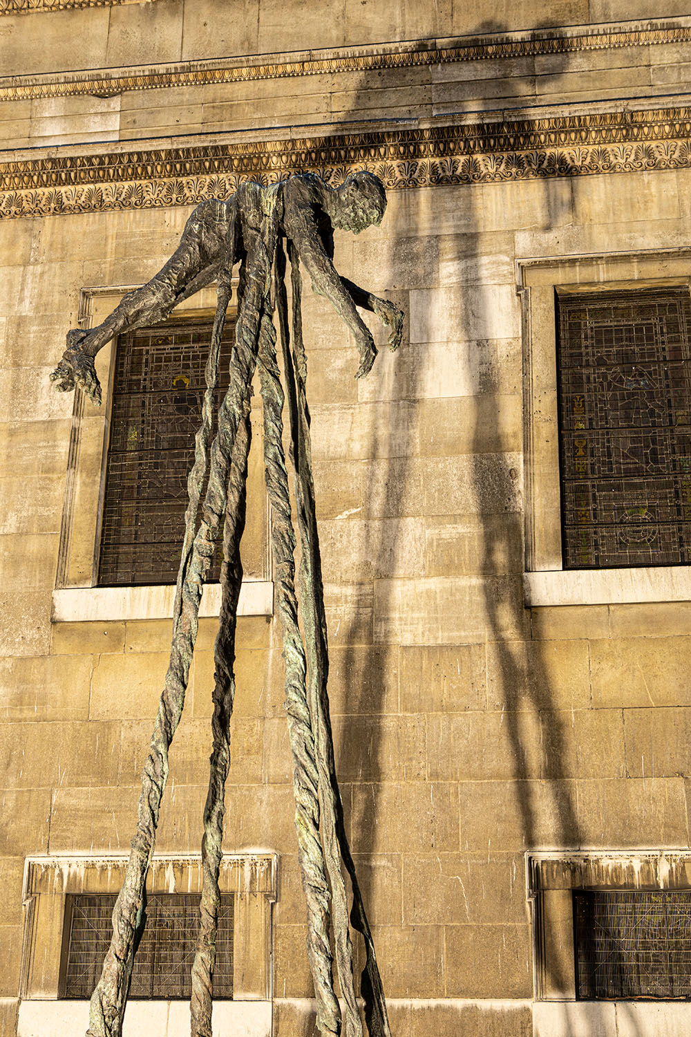 David: Oh, brilliant. Okay. Yes. And part of it is to do with light. So it’s getting dark earlier now. And a major part of it in my mind anyway is the lighting. So you see the shadow of the sculpture with the real sculpture. I like that interplay between the very physical sculpture and then the sort of shadow, the light interaction at night. Because it’s against this very, very large wall. It’s a neoclassical wall. The building was built in the 1820s. It’s got this beautiful stone wall. So you see the shadows against that wall, which I quite like.