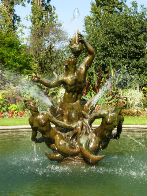 Sculptural fountains have all sorts of functional problems with them – they block up, you get leaks, limescale: they really are awkward which is why many of the Victorian ones don’t perform their true purposes any more. This one though, is really spectacular when its going full throttle. If the wind blows, you are liable to get wet but it’s super! The statues are full of energy, the figures are magnificent and they thrash about and make mischief – I love them.